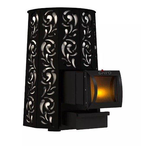 Печь банная Grill'D Violet Long, объем парной 8-20 м3, каменка комбинированная, максимальный вес камней 100 кг, топка выносная