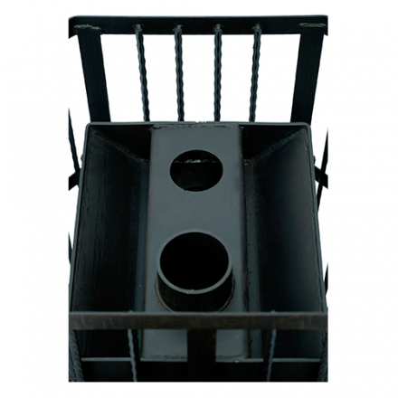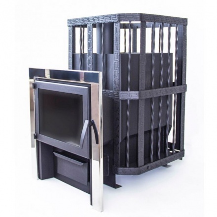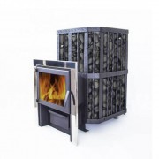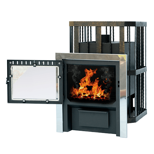 Отличительная черта данной печи заключается в объединении мощи металла и крепости камня. Печь доработана технологически, в нее внедрена система вторичного дожига отходящих газов, что позволяет сократить потери тепла при топке и увеличить скорость нагрева камней в печи.