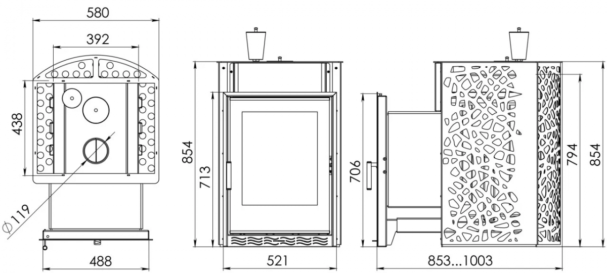 | Толщина материала (корпус закрытой каменки AISI 304): | 4 мм |