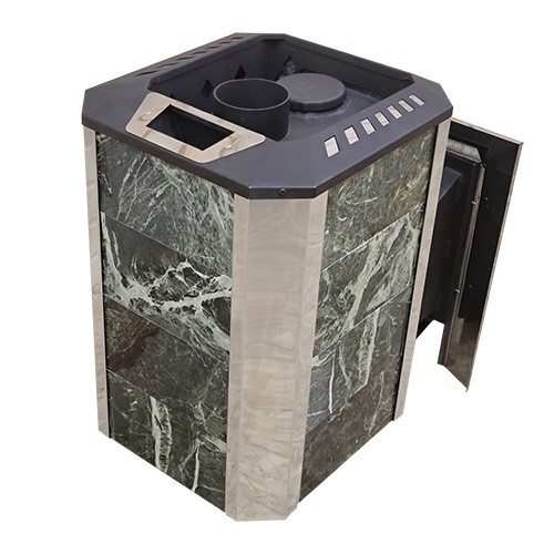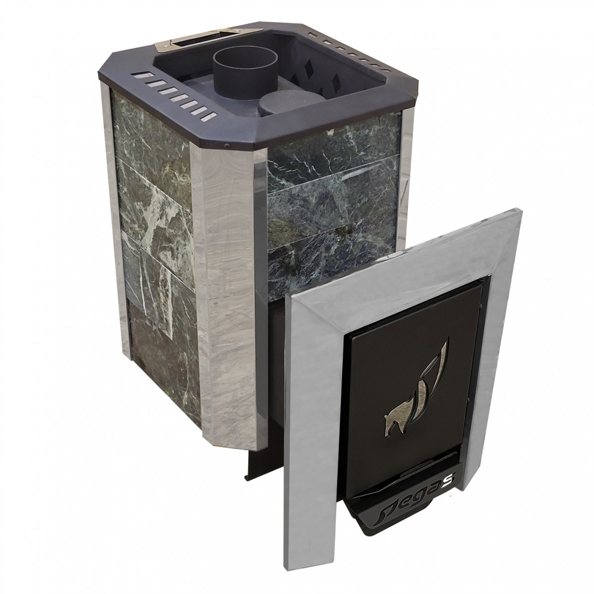 Печь банная Пегас 16 нерж в камне змеевик, дровяная, объем помещения 6-16 м3, каменка закрытая
