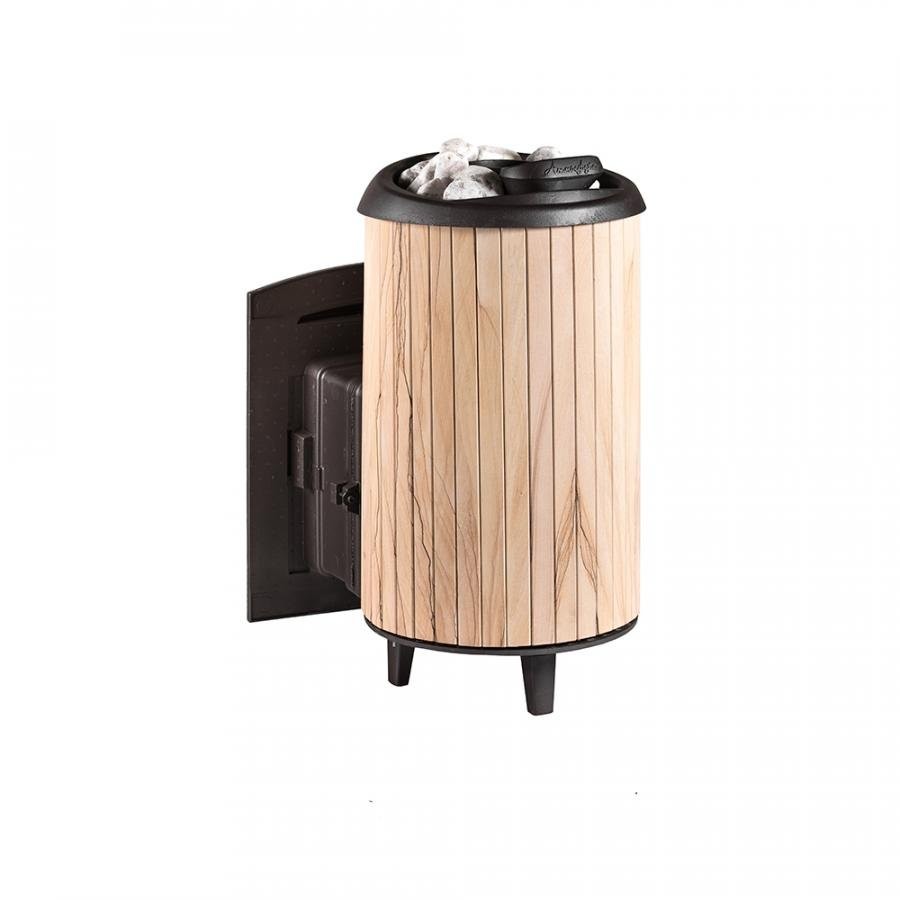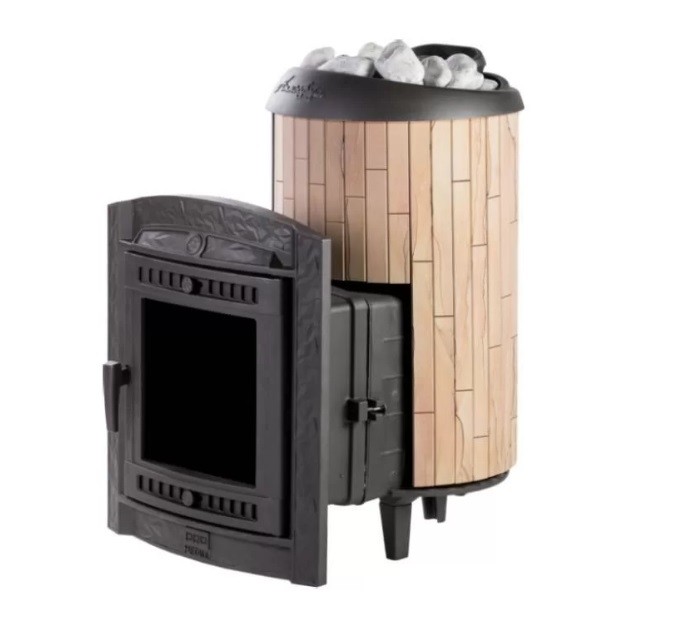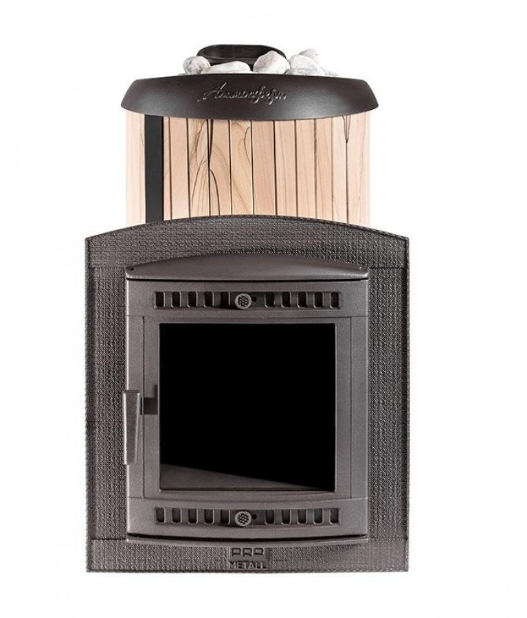 Печь банная ProMetall Атмосфера L в ламелях Окаменевшее дерево наборный рисунок, дровяная, парилка 12-24 м³, объем топки 54 л, материал: нержавеющая сталь/чугун