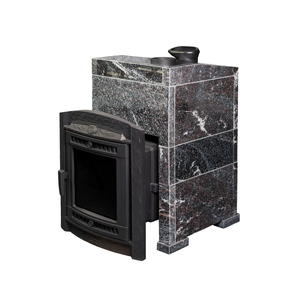 Печь банная ProMetall Атмосфера L в облицовке Амфиболит, дровяная, парилка 12-20 м³, объем топки 54 л, материал: нержавеющая сталь/чугун