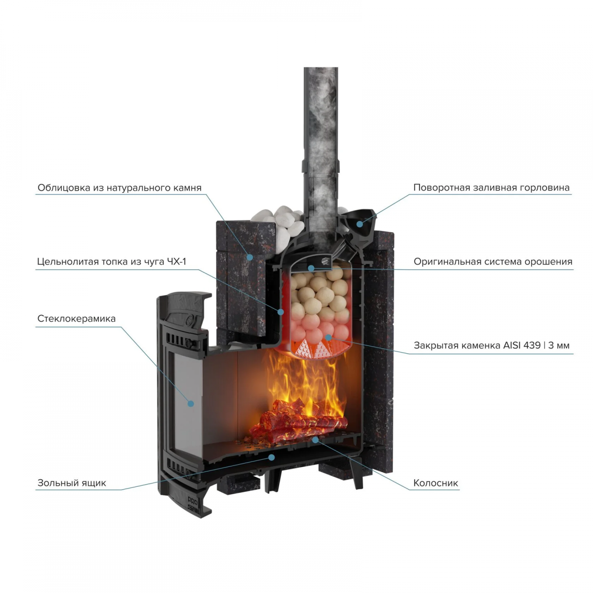 | Тип дверцы | чугунная с термостойким жаропрочным стеклом |