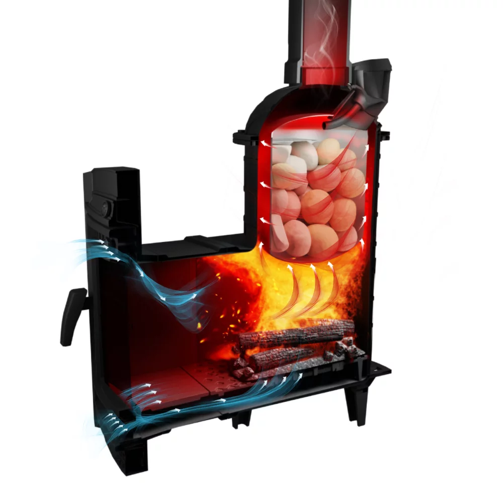 Модель печи в стильной и практичной облицовке из «Пироксенит ЭЛИТ». За счет использования несущих брусков, состоящих из цельного камня, теплоёмкость печи увеличивается на 50%. Конструкция просто собирается и позволяет легко заменить любую деталь в случае необходимости. Цена и КПД такой облицовки отличаются оптимальным соотношением.