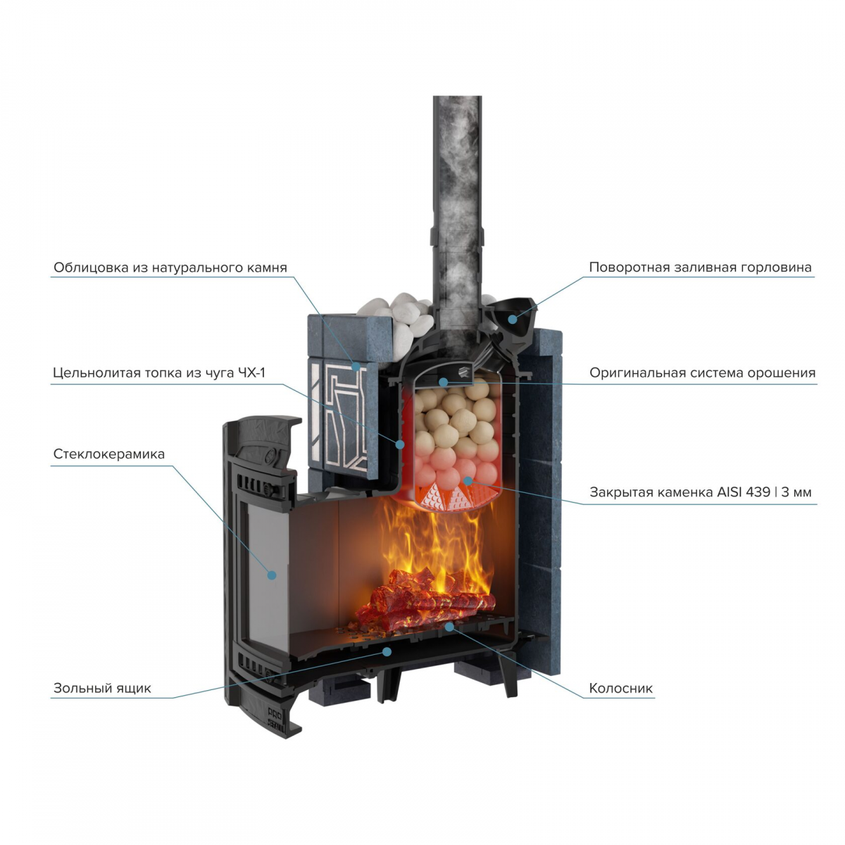 | Тип дверцы | чугунная с термостойким жаропрочным стеклом |