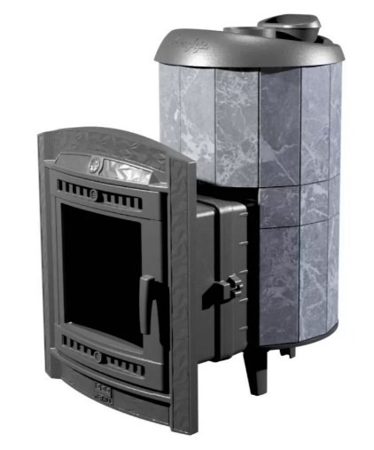 Практичная и компактная модель. Плитка из талькохлорита по периметру внешней каменки не только обладают хорошими теплонакопительными свойствами, но и придают печи оригинальный внешний вид. Модель с усиленной каменкой.