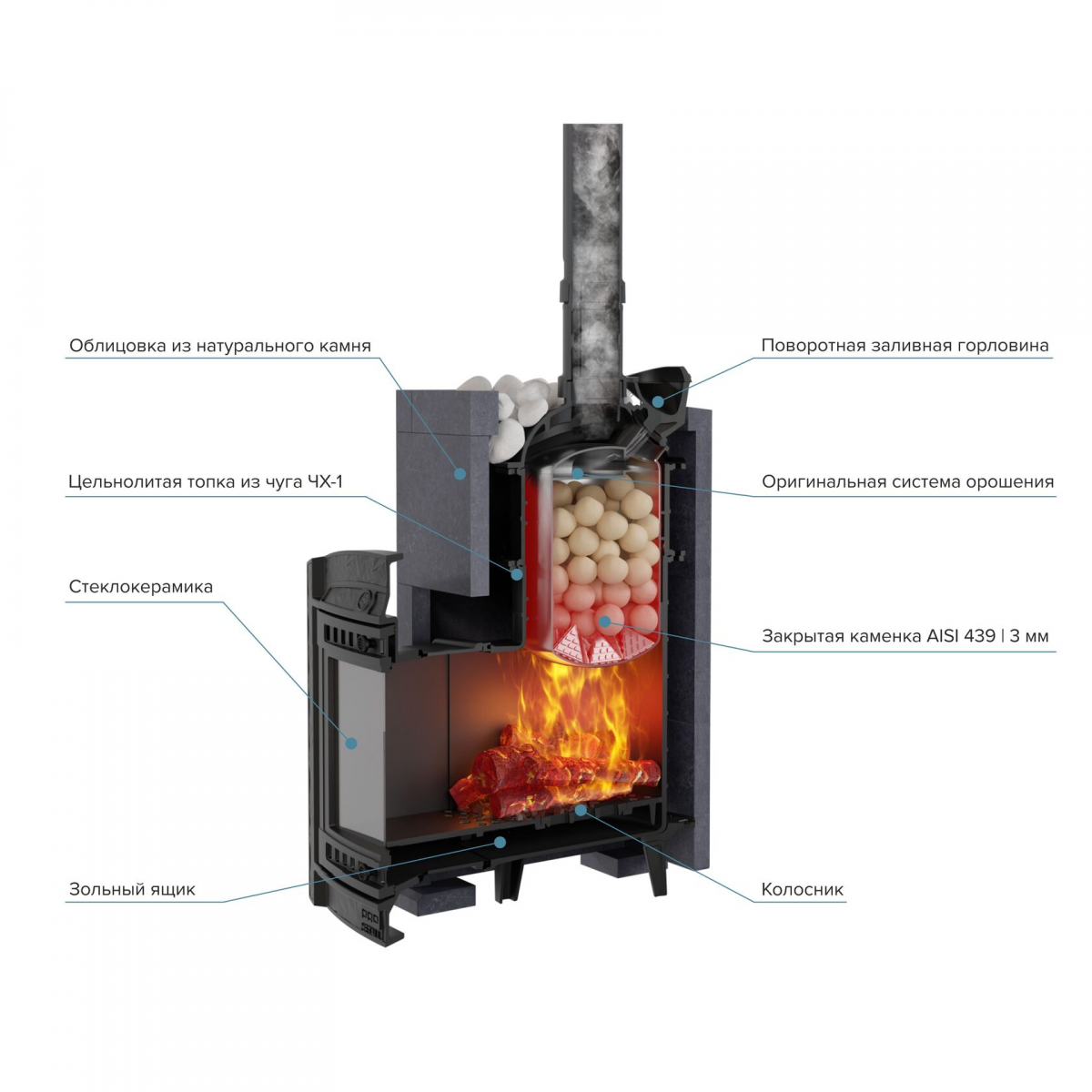 | Тип дверцы | чугунная с термостойким жаропрочным стеклом |