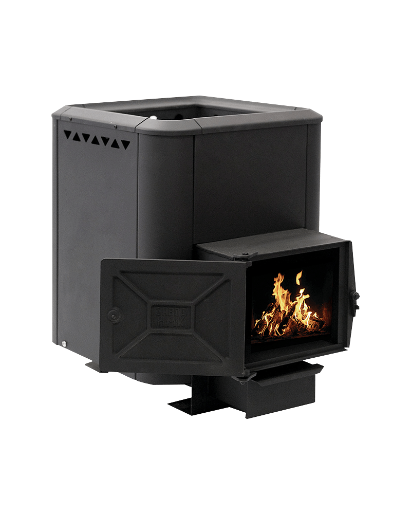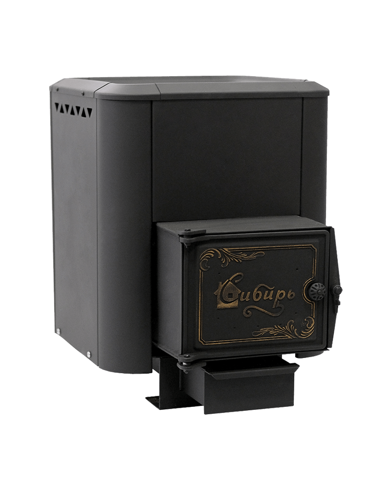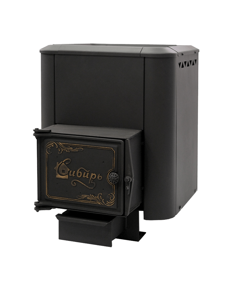 Печь банная Сибирь-15 - чугунная печь с выносным топочным каналом (конвекционная), металлический кожух, для парной до 15 м3