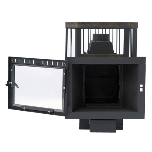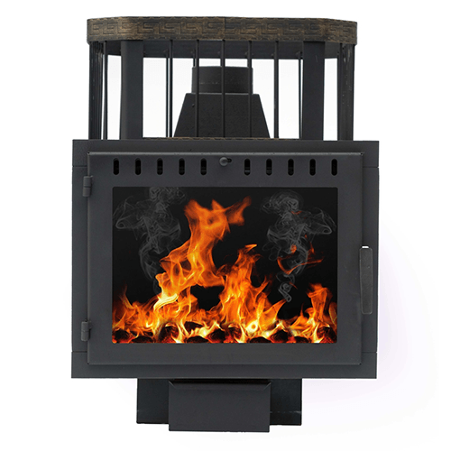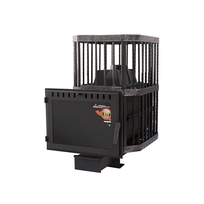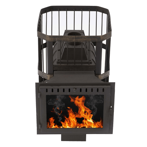 Чугунная печь для бани Сибирь-24 с панорамным стеклом и сеткой квадрат - Объем парилки: 12-24 м3, Исполнение: с выносом, Гарантия: 2 года.