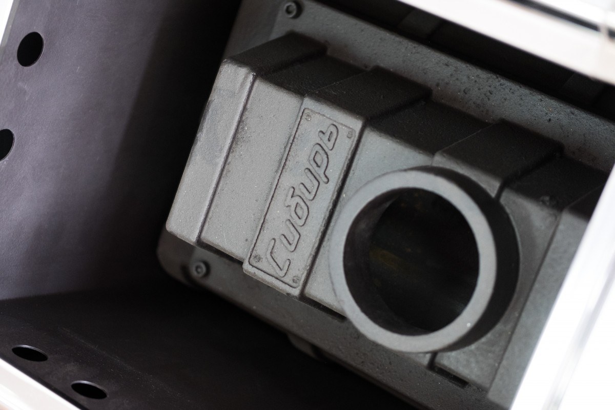Банные печи "Сибирь-24", произведенные из литого чугуна, по праву являются самыми надежными, долговечными и производительными по сравнению с металлическими собратьями. Литая чугунная топочная камера в банных печах «Сибирь» олицетворяет собой мощь, уверенность и статус. Чугун представляет собой самый жаропрочный, теплоемкий и износостойкий материал, выдерживающий предельные колебания температуры и влаги. Это свойство позволяет эксплуатировать банные печи "Сибирь-24" в длительном временном интервале с высокой интенсивностью, без потери всех изначально заявленных свойств. Отличительной особенностью банных печей "Сибирь-24", выполненных из чугуна является возможность их использования в коммерческих банях и саунах. Срок службы данных печей составляет более 10 лет. Печи рассчитаны на обогрев парильного и смежных помещений бани объемом от 12 до 24 м3. Топочная камера из чугуна представляет собой сборную конструкцию из трех элементов, соединенную между собой болтовым креплением и жаропрочным герметиком, обеспечивающим идеальное прилегание и полную герметичность.
