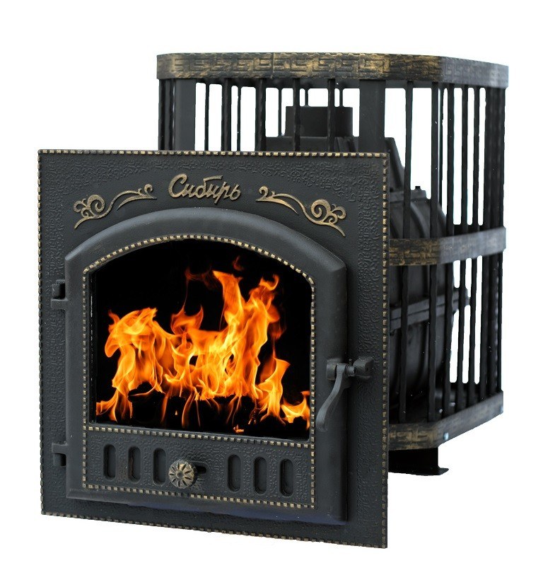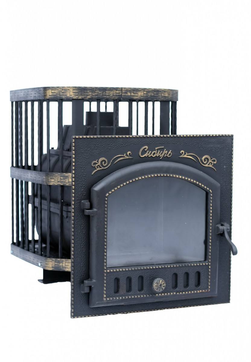 Печь банная "Сибирь-24" с каминной дверцей Сибирь для парной объёмом до 24 м³ (Кованная сетка)