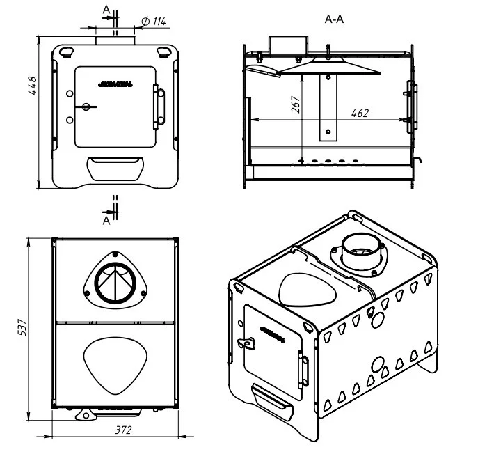 Объем парилки от 14 до 16 м3 делает эту печь идеальным выбором для небольших бань и отапливаемых помещений. Тип дверцы без стекла добавляет простоты и минимализма в дизайн, а закрытая каменка обеспечивает равномерное распределение тепла. Габариты 448x372x537 мм и вес 40 кг делают установку и обслуживание удобными.