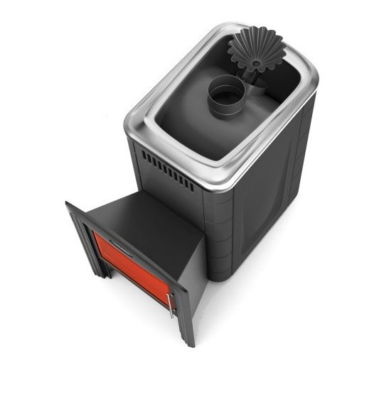 Как и все печи линейки Ангара 2012, оснащена закрытой каменкой (ЗК). Уникальная дверца Витра - с большим стеклом для панорамного вида на огонь - создаёт комфортную обстановку в комнате отдыха.