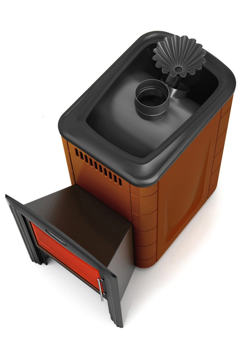 Как и все печи линейки Ангара 2012, оснащена закрытой каменкой (ЗК). Уникальная дверца Витра - с большим стеклом для панорамного вида на огонь - создаёт комфортную обстановку в комнате отдыха.