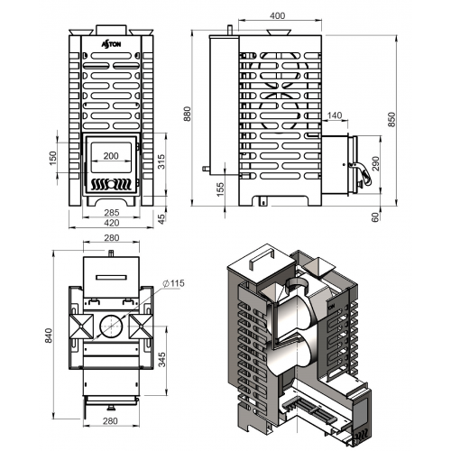 ASTON — бренд банных печей для бюджетных парных и бань-бочек. Несмотря на доступную цену, их конструкция очень интересна: