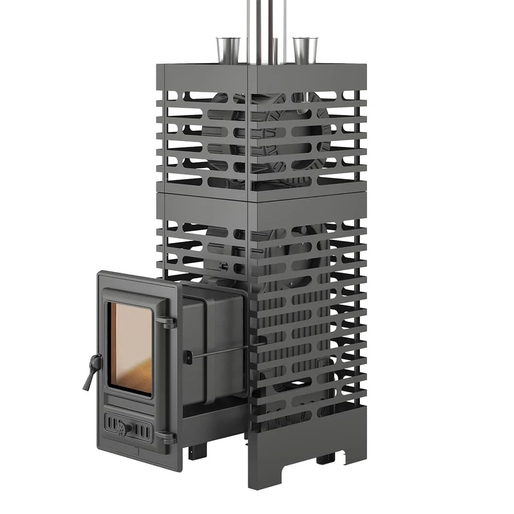 Для закладки камня предназначена цилиндрическая каменка из нержавеющей стали AISI 430, размещённая на пути пламени и горящих дымовых газов. Каменка рассчитана на 15-20 кг камней для бани, которые за счёт обтекания пламенем нагреваются до температур свыше 450°C.