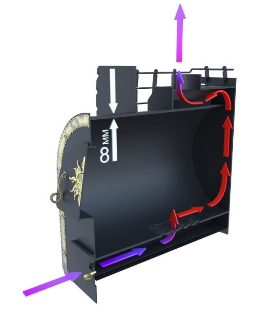 • встроенный стальной колосник 8 мм рассчитан на долгий срок службы (в дальнейшем может быть заменен на чугунный);