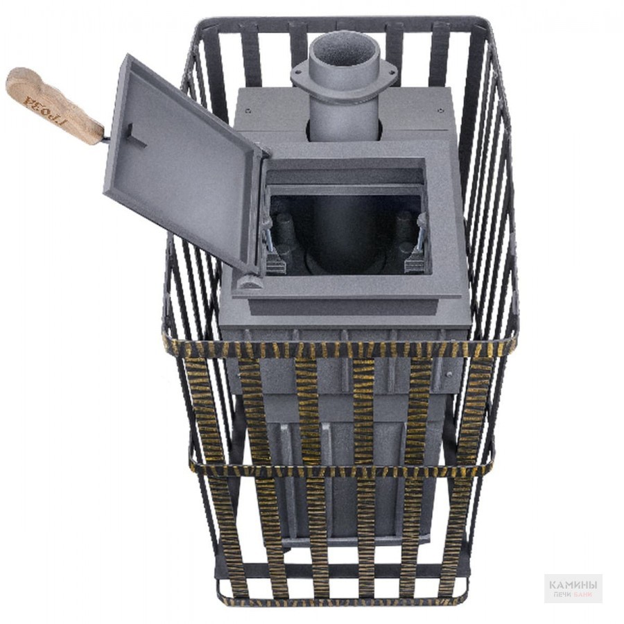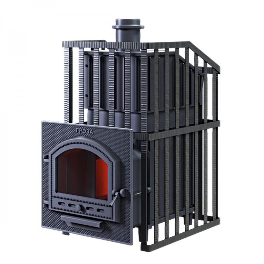 Печь Гроза Ураган 24 (П) из чугуна создаст подходящий климат для вашей бани. Печь для бани Гроза Ураган - расширенный комплект печи в сетке. Максимально приближенный вариант печи для режимов русской парной, имеющий непосредственно закрытую чугунным коробом каменку, дверцу для пара с ручкой из бука, увеличенную до 50см чугунную стартовую трубу. Печь легко модернизируется до полноценной печи предназначенной для Русской бани путем замены стальной сетки на каменную облицовку без демонтажа дымохода.Модель Гроза Ураган выполнена на базе топочного агрегата Гроза - экономичная модель для частного применения. Основной принцип работы печи сохранён – получение пара с теплоёмкой каменки прямого нагрева.Каменка является сводом топки, нагревается с нижней поверхности снабженной теплосъемными шипами для увеличения контакта с пламенем.
