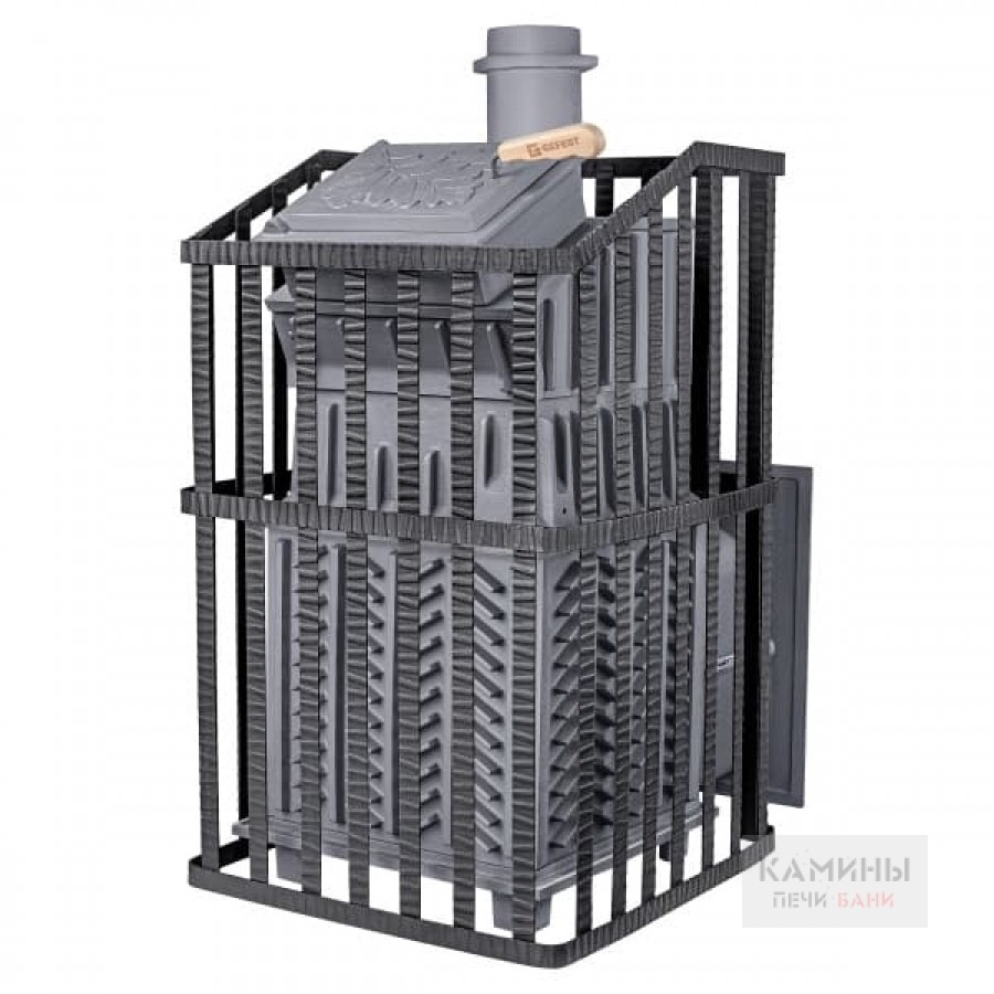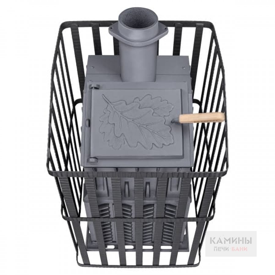 Печь легко модернизируется до полноценной печи предназначенной для Русской бани путем замены стальной сетки на каменную облицовку без демонтажа дымохода.