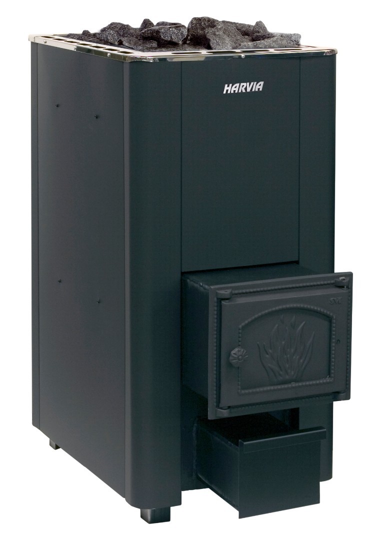 Корпус печи изготовлен из высококачественной стали, покрытой в насыщенный черный цвет графитового оттенка. Нержавеющая сталь отличается стойкостью к воздействию коррозии, а потому каменка надолго сохранит свой привлекательный внешний вид. Массивная монолитная чугунная дверь топки добавляет общему дизайну конструкции нотку аутентичности. Удобство использования и ухода за каменкой добавляет наличие специального поддона, в который попадает полученный в процессе горения дров пепел. В процессе установки Harvia 50 следует избегать требований по организации безопасного расстояния по периметру печи, которое также будет способствовать правильной циркуляции воздуха.