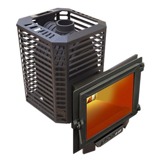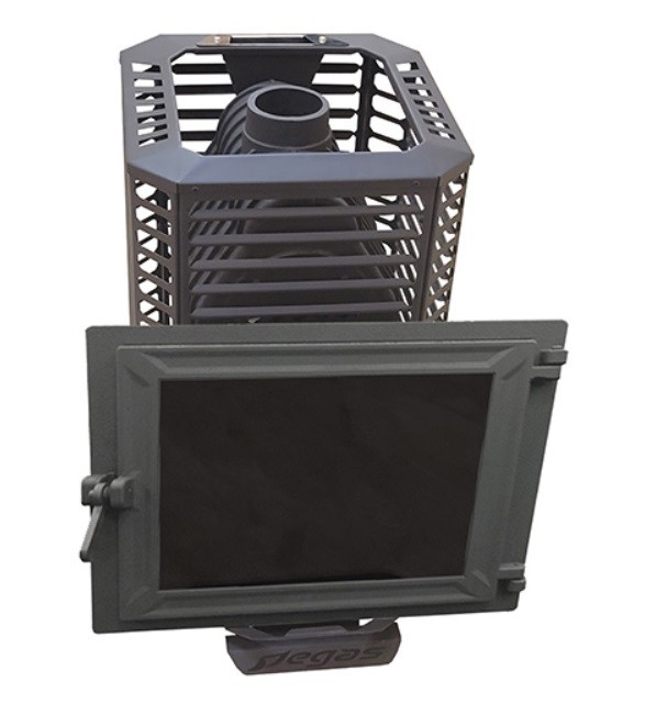 Печь для бани Пегас 26 нерж панорама сетка премиум, закрытая каменка, топка с выносом, сталь/нержавеющая сталь, для парной 12-26 м3, мощность 26 кВт, масса камней 120 кг
