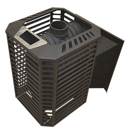 Продуманная конструкция чугунной банной печи. Печь с наличием закрытой каменки. Внутренний отсек изготовлен из нержавеющей стали, что повышает надежность и долговечность. Емкий сетчатый корпус печи вмещает 100 кг камня. В комплекте к печи поставляется жадеит для загрузки внутренней каменки.