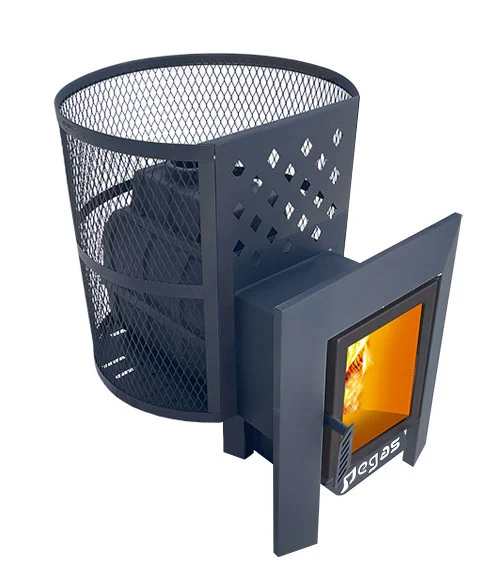 Чугунная печь Пегас Легион с цельнолитой камерой сгорания выполнена из марки СЧ20, это материал с высокой теплоёмкостью и стойкий к резким перепадам температур. Он используется в банных печах. Корпус печи сформирован с интегрированными ребрами жёсткости, толщина чугуна в местах ребрения и в зоне повышенной термонагруженности достигает 15мм Печь оснащена выносным топливным каналом, позволяющим топить его из смежного помещения. Топка большой ёмкости, позволяет загрузить большое количество дров. Чугунная колосниковая решетка, выдвижной зольный ящик, дополнительные отверстия для притока воздуха дают возможность произвести нужную регулировку горения. Эргономичная круглая форма сетки выполнена из стали с просечной вытяжкой, что снижает вес конструкции и стоимость.