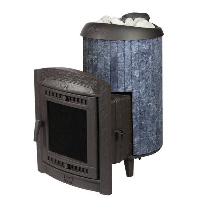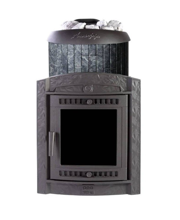 Печь для бани ProMetall Атмосфера L Ламели Талькохлорит наборный рисунок, чугун, закрытая каменка, топка с выносом, для парной 12-24 м3, масса камней 25-30 кг