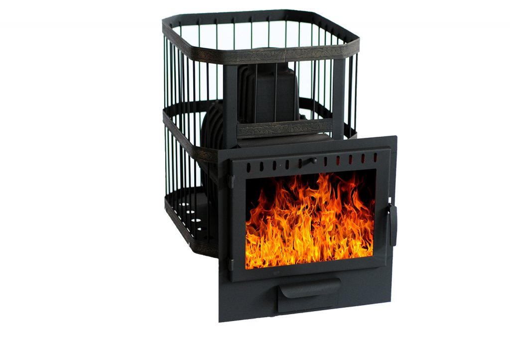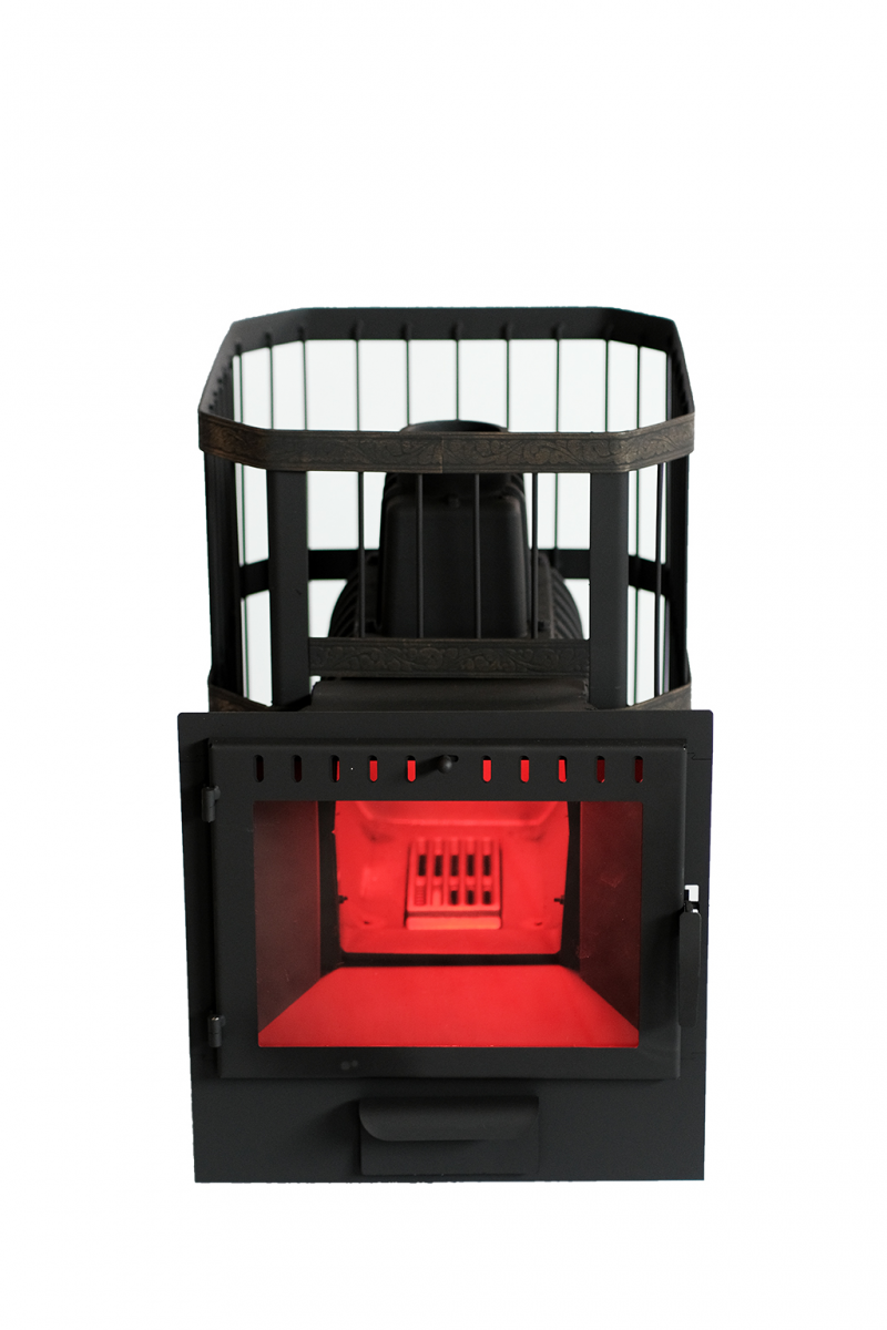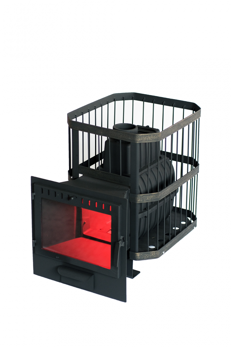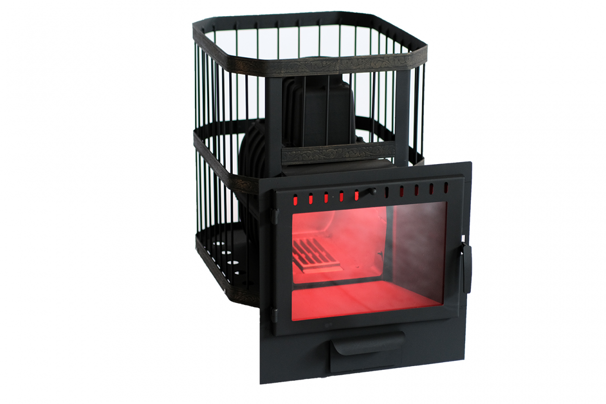 Печь для бани Сибирь-22 с панорамной дверцей (Сетка), дымоход 115 мм, материал чугун, парилка 10-22 м3