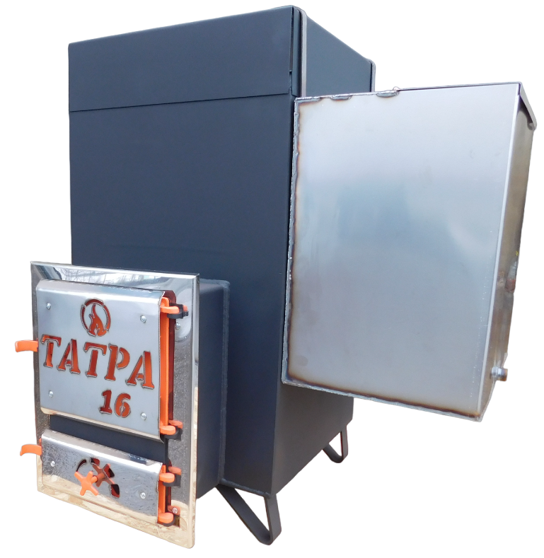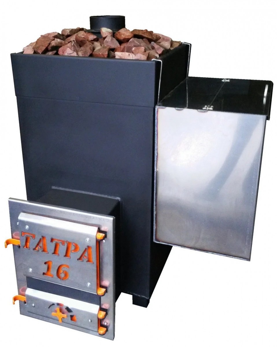 Печь для бани Татра Т16, с баком для воды на 80 л., материал топки сталь, для парной до 20 м3, масса камней до 110 кг