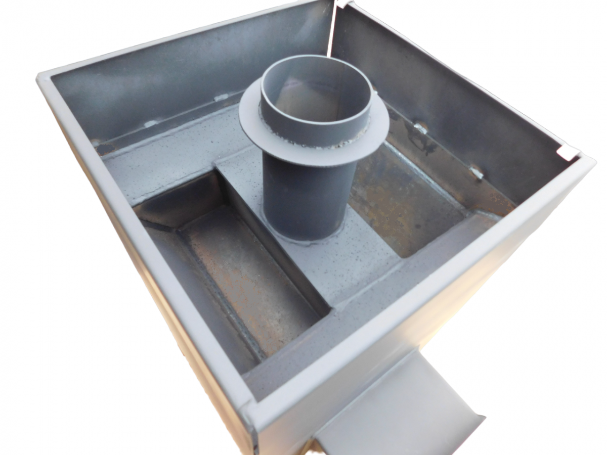В конструкции печи предусмотрен четырехходовой теплообменник для камней. Печь состоит из топки и каменки. Материал банной печи - низколегированная горячекатаная сталь марки 09Г2С толщиной 6-8 мм. Габаритные размеры самой печи длина/ширина/высота 730x505x1100 мм.