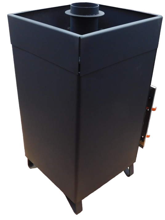 В конструкции печи предусмотрен четырехходовой теплообменник для камней. Печь состоит из топки и каменки. Материал банной печи - низколегированная горячекатаная сталь марки 09Г2С толщиной 6-8 мм. Габаритные размеры печи длина/ширина/высота 730x505x1100 мм.
