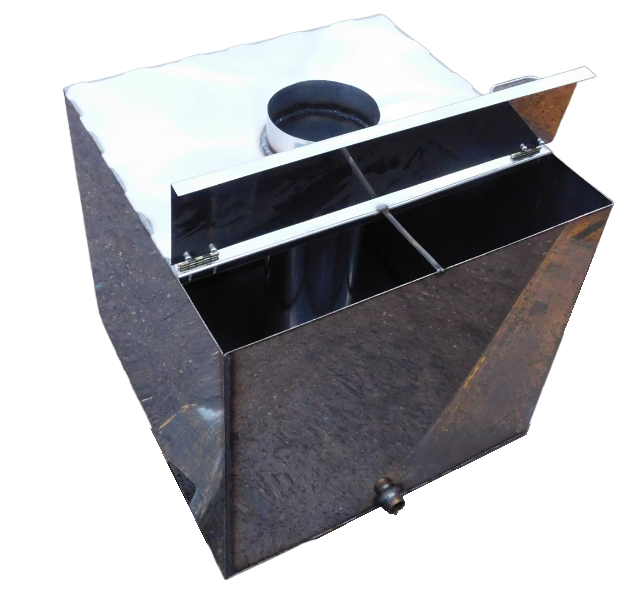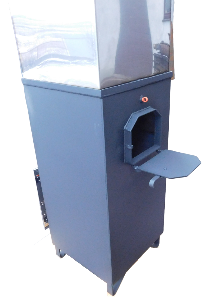 Объем загружаемых камней в каменку 70 литров (массой около 120 кг) Топочные дверцы вынесены вперед на 190 мм, что позволяет топить из соседнего помещения. Бак для воды съемный, для удобства при транспортировке.