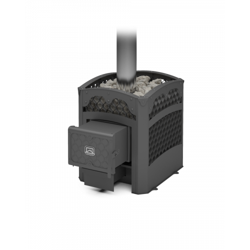 Еще одной отличительной особенностью печи, без сомнений, стала максимально возможная площадь теплообмена за счет большого количества конвекционных ребер чугунной топки. Да и округлая форма самой топки сконструирована так, чтобы прогревать весь объем каменной закладки без застойных «холодных» зон. В результате имеем максимально жесткую и действительно прочную печь. Нагревайте парную быстро, парьтесь по-богатырски! Выверенная конструкция печи позволяет равномерно прогреть не только парную, но и мойку, и комнату отдыха. Печь «Былина» рассчитана на парную объемом до 12 м3. Диаметр дымохода — 115 мм. На печь можно установить любые стандартные элементы дымохода. Гарантийный срок — 5 лет!