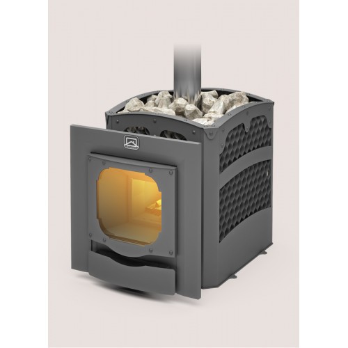 Еще одной отличительной особенностью печи, без сомнений, стала максимально возможная площадь теплообмена за счет большого количества конвекционных ребер чугунной топки. Да и округлая форма самой топки сконструирована так, чтобы прогревать весь объем каменной закладки без застойных «холодных» зон. В результате имеем максимально жесткую и действительно прочную печь. Нагревайте парную быстро, парьтесь по-богатырски! Выверенная конструкция печи позволяет равномерно прогреть не только парную, но и мойку, и комнату отдыха. Печь «Былина» рассчитана на парную объемом до 18 м3. Диаметр дымохода — 115 мм. На печь можно установить любые стандартные элементы дымохода. Гарантийный срок — 5 лет!