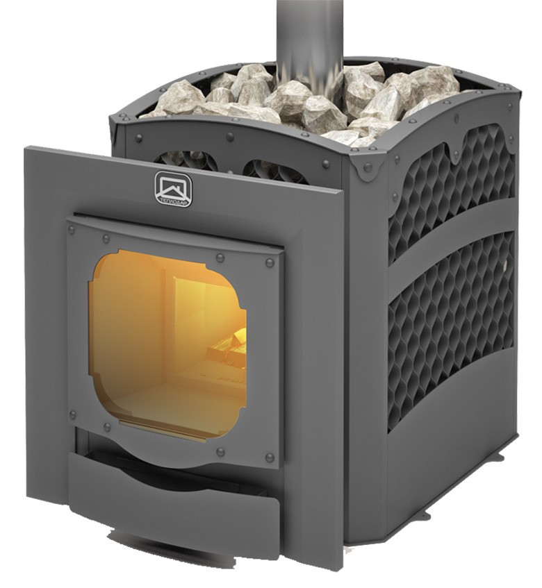 Большое количество качественно нагретых камней, обеспечивает стабильность температуры в парилке. Печь снабжена удобным ящиком зольника, который также является регулятором интенсивности горения. Колосник из литейного чугуна, являющийся элементом конструкции, обеспечивает равномерное устойчивое горение по всей длине топки.