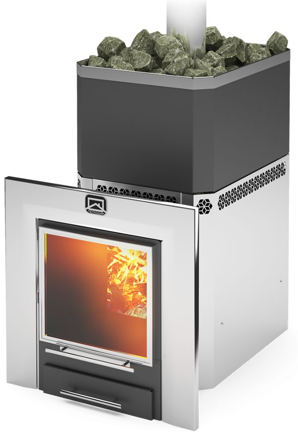 Печь оснащена многосекционным скоростным парообразователем для получения высокодисперсного пара уже через 30 минут после растопки печи. Нагрев воды возможен установкой бака на трубе или теплообменника (регистра) соединенного с баком для регистра.