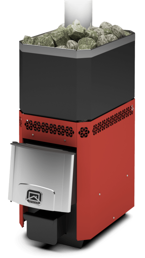 Каменка вентилируемая для достижения оптимального баланса температуры и влажности в парном помещении бани характерного для "Русской бани". Снаружи печь окрашена термостойкой краской. Протапливание печи возможно только из парного помещения бани.