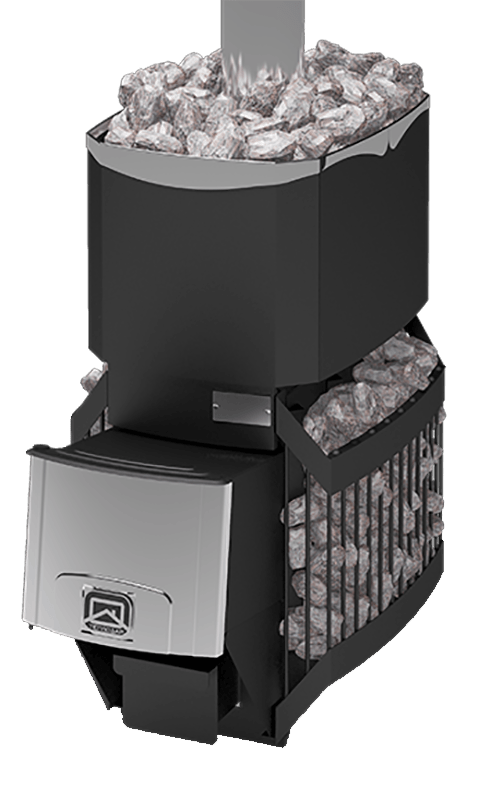 - большая загрузка камней (минимум кожуха-конвектора), микроклимат "Русской бани";