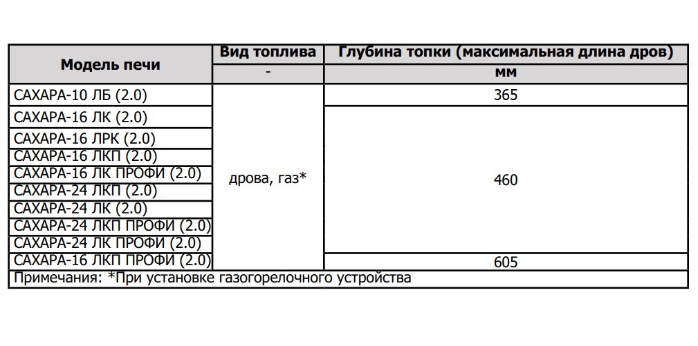 | Вид топлива | Дрова, газ (при установке газогорелочного устройства) |