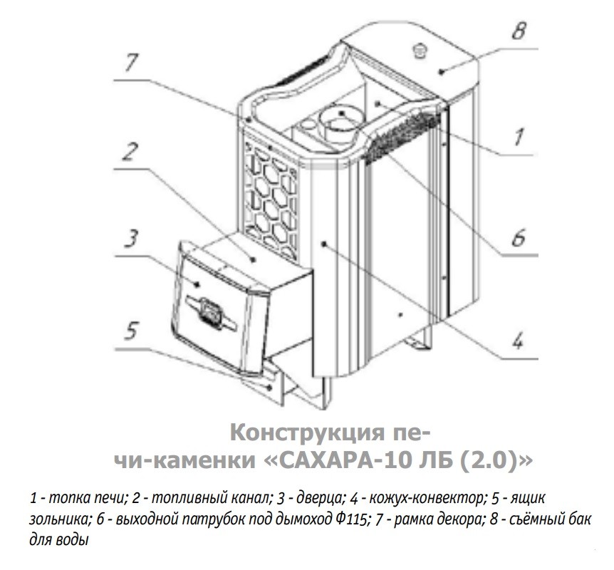 Печь для бани Теплодар Сахара 10 ЛБ (2.0) - печь для парного помещения бани объемом до 10 м3. Печь оснащена выносной топкой для протапливания из соседнего с парной помещения бани. Сама топка изготовлена из нержавеющей стали толщиной 2,5 мм, а колосник печи чугунный.