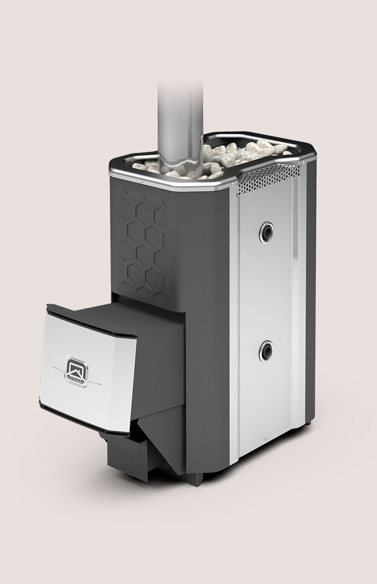 Сибирь (2.0) – очень мощная печь-каменка, рассчитанная на большие парные. Ее мощности хватит на обогрев всей бани и на приготовление качественного пара для парной. Кожух-конвектор печи защищает парную от инфракрасного излучения, а декоративные вставки из зеркальной нержавеющей стали оживляют внешний вид печи. Отличительная особенность печей «Сибирь (2.0)» — быстрый нагрев парной до высоких температур (до 100–110°С за 30 минут) и предельно «сухой пар» (влажность воздуха 5–30%). Удобный доступ к камням, благодаря смещенному к передней стенке печи выходу дымохода. Дно каменки из жаростойкой нержавеющей стали с содержанием хрома от 17% для снижения риска деформации каменки дополнительно усилено несущим элементом. «Переход» с дровяной на газовую банную печь задача довольно простая – достаточно приобрести нужную модификацию газовой горелки для конкретной печи, установить ее и настроить. Помимо привычного преимущества газа – его экономичности, есть еще ряд положительных моментов при его использовании, например: отсутствие сора от дров и золы в комнате отдыха или предбаннике. Но, пожалуй, самое главное преимущество газа перед твердым топливом – возможность гибко управлять процессом горения – комфортная температура в парилке поддерживается в автоматическом режиме. Сибирь очень мощная и эффективная. Камни в корзине каменки прогреваются с пяти сторон и дают много лёгкого пара. Выход дымохода у печи классический – смещенный к переднему краю печи. Такое расположение дымохода обеспечивает максимальный доступ к каменке. Встроен регистр-теплообменник для подключения к выносному баку для дистанционного нагрева воды.