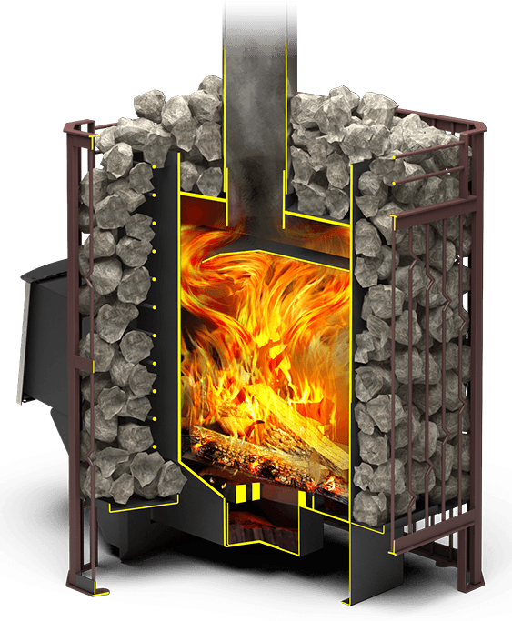Печь для бани Теплодар Тамань-Сетка 20 Т - оптимальное соотношение стоимости и потребительских характеристик! В конструкции печи учтены все основные потребности: здесь и большой объем закладки камней для получения необходимого количества пара - до 160 кг, и мощная топка для быстрого нагрева каменки и парной. Стремительный нагрев достигается благодаря особой конструкции вертикальной закладки: между камнями и стенками топки существует специальный зазор для конвекции воздуха. Такое решение экранирует жесткое инфракрасное излучение от раскаленных стенок топки, нагревая тем самым большое количество камней, и создает «мягкое» тепло в парилке. Усовершенствование дымосборника позволило уменьшить температуру выходящих дымовых газов и увеличить КПД печи.