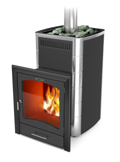 Дровяная банная печь премиум-класса, королева печей «TMF», отличающаяся красотой, силой и статью. Она сочетает в себе мощную банную печь и большой красивый камин. Лабиринтный газоход обеспечивает мощный скоростной нагрев парилки объемом до 30 м3 и качественный прогрев каменной закладки массой около 100 кг. Печь ориентирована на интенсивное парение и изготавливается только из жаростойкой стали. На все модификации печи «Калина» распространяется трехлетняя «Железная гарантия» на целостность металла и сварных швов топки. «Калина Inox» идеально подходит для любителей попариться дружной компанией. В большей степени ориентирована на режим финской сауны с повышенной температурой воздуха и пониженной влажностью.