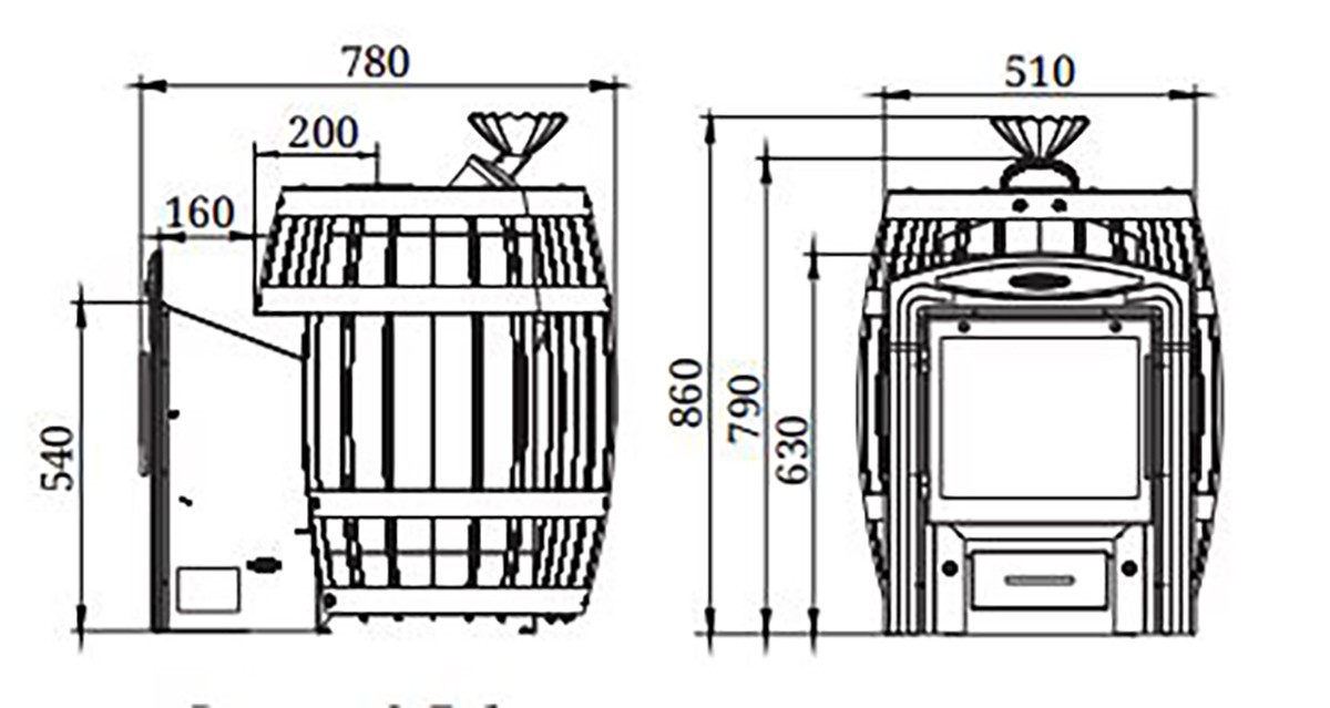 Вместительная каменная закладка (во внутреннюю каменку помещается 30 кг камней, а во внешнюю каменку - 120 кг) обеспечивает качественное парообразование, имеет значительные теплоаккумулирующие свойства и исключает жесткое инфракрасное излучение от стенок топки. Большая площадь поверхностей нагрева позволяет быстро прогреть большой объем каменной закладки и обеспечивает стабильность температуры в парилке.