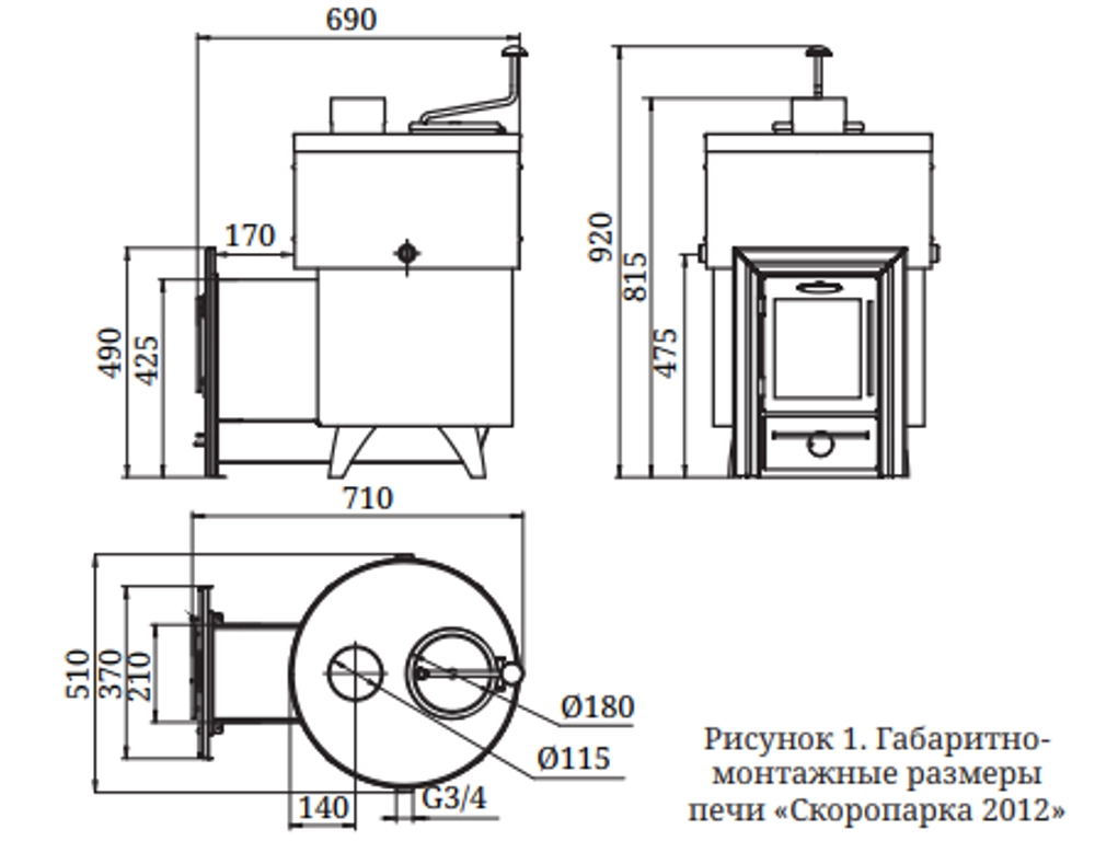 Время нагрева парной до характерных для русской паровой бани температуры и влажности (при условии правильно организованных теплопароизоляции и вентиляции парной) ориентировочно летом 15-20 мин. после закипания воды в баке, и 30-40 минут зимой. Горячая вода для мытья, запаривания веников и хозяйственных нужд также берётся из встроенного бака.