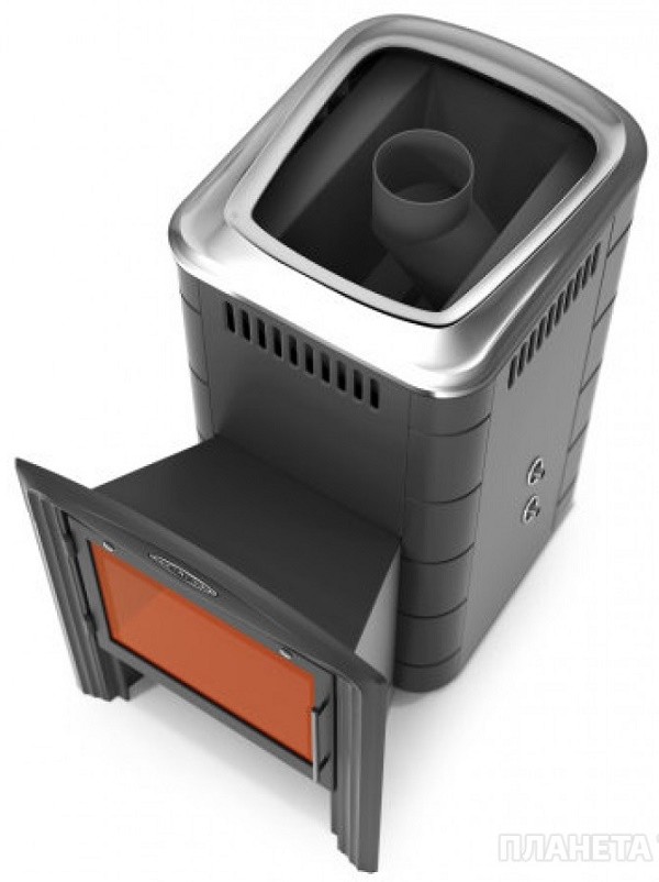 Печь для бани Термофор Тунгуска 2017 Inox Витра ТО антрацит - оптимальный выбор для среднеразмерных (до 18 м3) парных. Печь изготовлена из жаростойкой стали. Центральное расположение дымохода облегчает его монтаж. Большое стекло в топочной двери (42 см диагональ) добавит уюта в Вашей комнате отдыха. Встроенный между кожухом-конвектором и стенкой печи теплообменник позволяет Вам легко решить вопрос с горячей водой в бане. К системе можно подключить выносной бак на 55, 70, 80 или 110 л.
