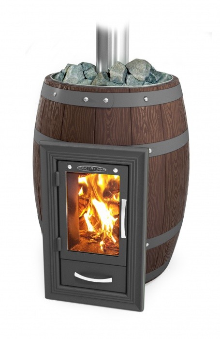 Банная печь-бочка «Вариата Баррель Inox» предназначена для приготовления русской паровой бани или финской суховоздушной сауны в парных объемом 8-18 м3. Печь лишена таких фундаментальных недостатков печей-сеток, как неуправляемая воздушная конвекция и низкая температура камней из-за охлаждения их воздухом. Топка печи выполнена из высоколегированной жаростойкой стали и представляет собой модификацию топки банной печи «Компакт 2013 Inox».