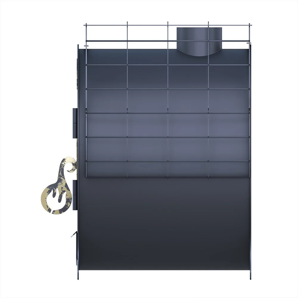 Печь быстро прогреет помещение до 65-85°С за 40-50 мин, чему способствует форма решетки каменки по всей площади топки. Тепло от горения дров накапливается в камнях (рекомендуемый общий вес — до 70 кг), моментально превращают воду в пар, повышая тем самым теплоотдачу. Камни защищены от падения решеткой по периметру.