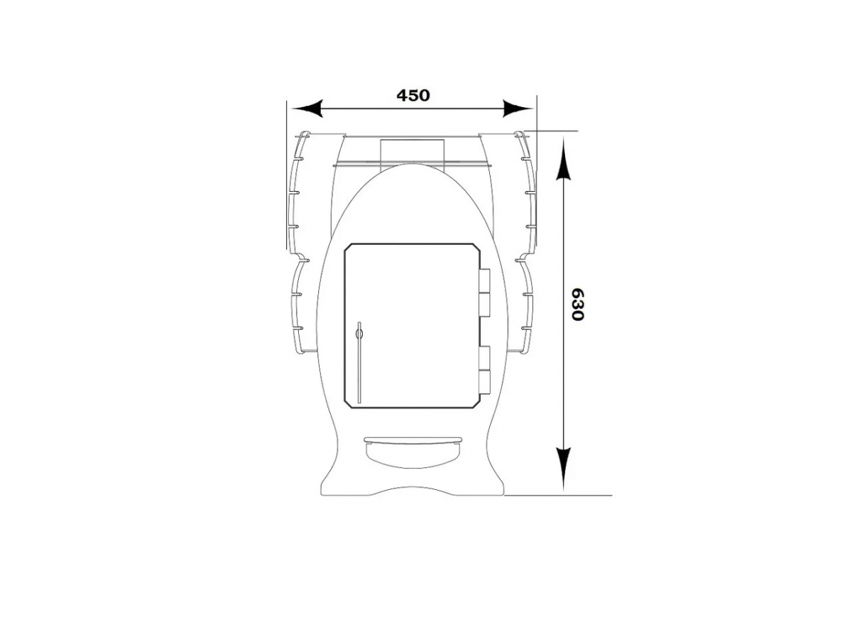 Конструкция «Емели мини ЛАЙТ» может быть установлена в бани бочки и компактные парилки небольшого размера с топкой внутри помещения. Высокая форма топки замедляет горение. Встроенный стальной колосник 8 мм рассчитан на долгий срок службы (в дальнейшем может быть заменен).